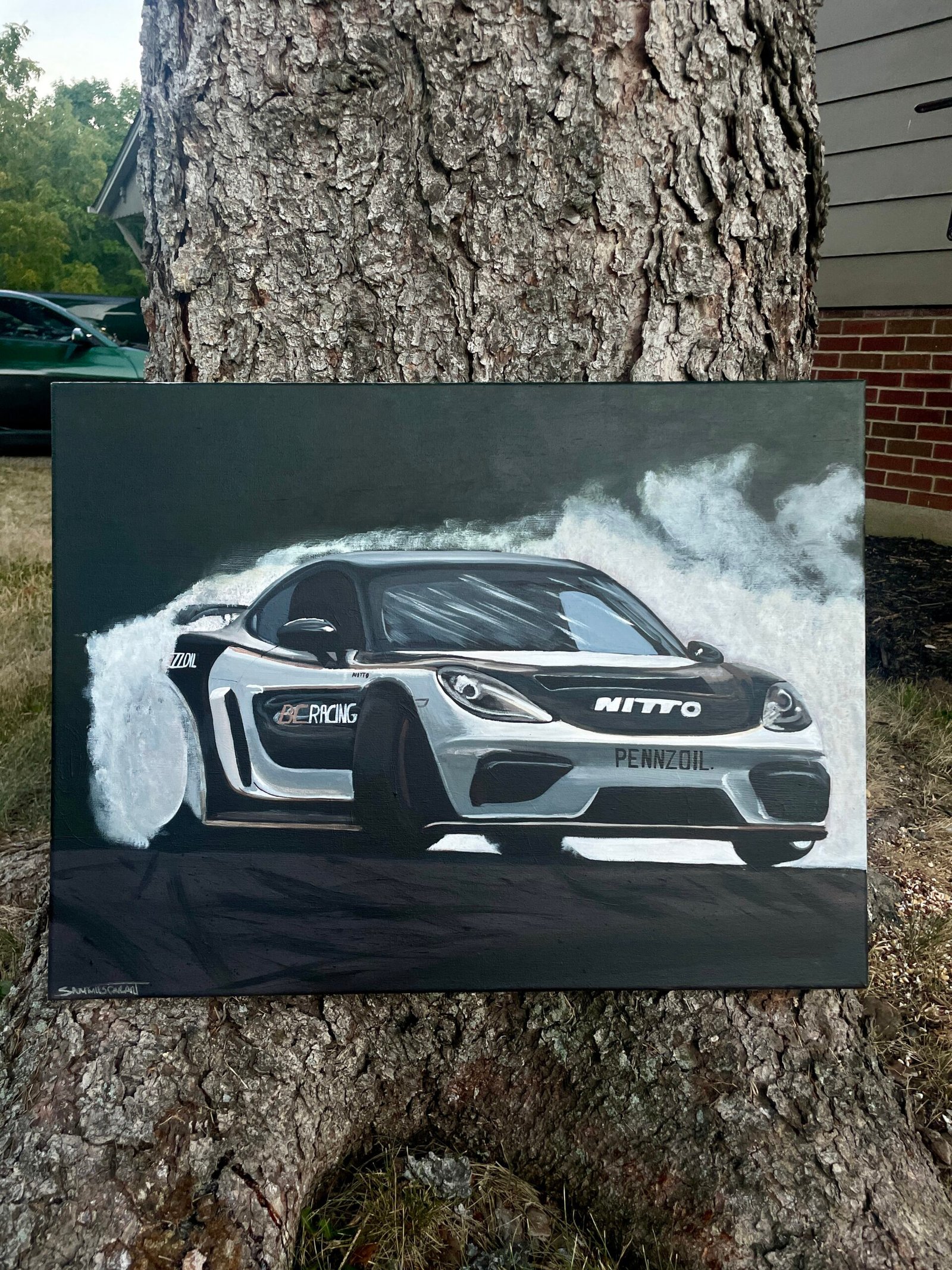 Immerse yourself in the exhilarating world of motorsport with an exclusive painting of Chelsea DeNofa’s Drift Porsche, featuring the iconic 718-generation Cayman transformed into a breathtaking drift car. This artwork encapsulates the raw power, precision, and excitement of drifting, making it a must-have for car enthusiasts and art collectors alike.